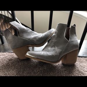 Grey suede steel toe look 2” block heel Worn handful of times; ton of wear left Comes with box Dupe for Jeffrey Campbell