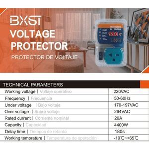 Delay protection: The device encounters voltage fluctuations and will protect the device by providing output until the voltage is stable. The yellow light is on. The device will delay for 180S and work again.