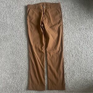 Has 2 front pockets and 2 back pockets. Button waist and zipper fly, which work perfectly. Brown color which goes with mostly anything. Solid pattern shown throughout the pants. Lightweight material which makes it comfortable to wear great for casual wear or dress wear. Originally $200 so don't miss out on this deal !!