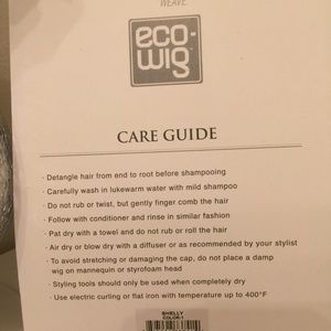 Washing Instructions; Wash in lukewarm water with mild shampoo; gently finger comb through the hair; follow with conditioner and rinse in similar fashion; pat dry with towel; Air Dry.