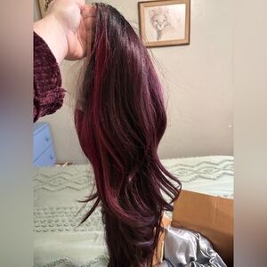 Enhance your style with this elegant burgundy wig. Perfect for any occasion, this wig offers a rich color that stands out. Brand new with lace intact. Light yaki texture