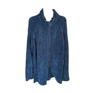 Outside additions by StanHerman women’s chenille, ribbed blue front zip sweater