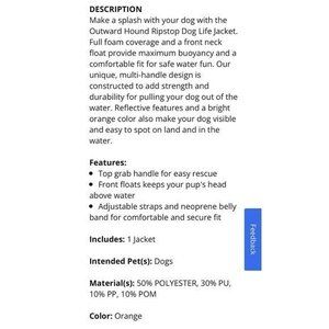 Outward Hound Ripstop Dog Life Jacket Extra Small 5-15 Lbs Orange Gray