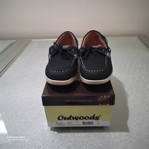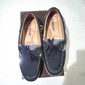 Outwoods Path-3 Black Lace Combo Boat Mocks White Stitching Women Shoes NWT 9M