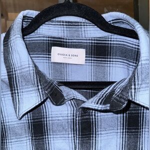 Ovadia & Sons Button Down Flannel Shirt long sleeve plaid windowpane sweater