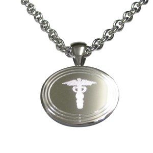 Oval Caduceus Medical Symbol Pendant Necklace