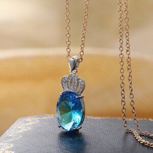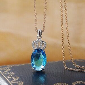 🔥 Oval Gemstone Crown Silver Plated Pendant Necklace for Women, EVGG1114