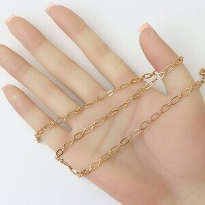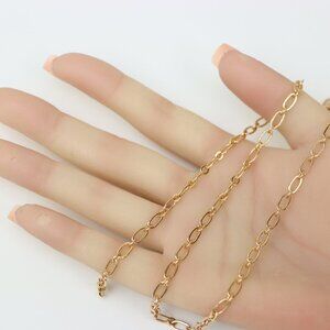 This rose gold necklace features a trendy oval link chain, giving it a bold yet airy appearance. Crafted from gold-plated high-quality brass, it adds a modern edge while remaining versatile and lightweight.