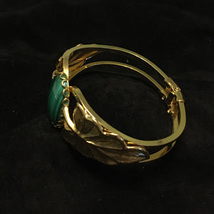 New~Bracelet with 25X18mm Oval Malachite. Fits 6 1/2" -- 7 1/2" wrist. Width 1" Antique gold
