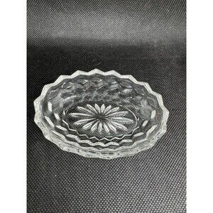 Oval Pressed Glass Starburst Base Sawtooth Rim 5" Vintage Trinket, Candy Dish