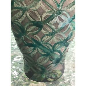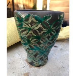 Created on the Potters Wheel, hand painted/glazed it in green Geometric pattern.