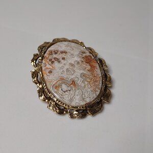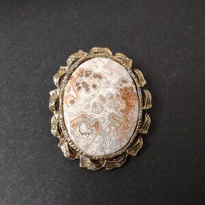 Oval Shaped Stone And Metal Brooch Pendant. Check Out My Closet For Other Great Items!!! Thank You For Considering Making A Purchase.