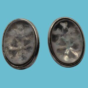 Oval Silver Tone Clip On Earrings Floral Design Eerie Iridescent Whimsygoth