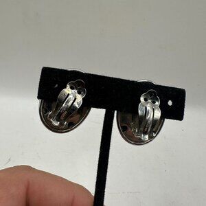 Oval Silver-Tone Clip-On Earrings By Whiting & Davis Co.