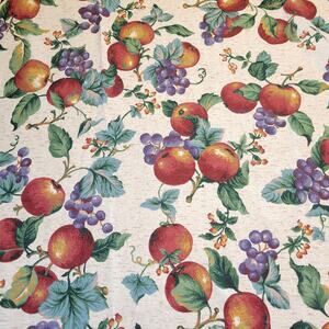 Oval Tablecloth Fruit Print 58x80" Red Apples Purple Grapes Cotton Blend