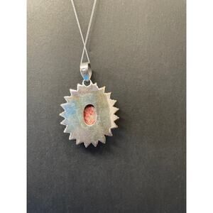 Oval Thulite and Sterling Silver Pendent Neckless 18" Chain