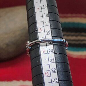 Beautiful stone, tests authentic. I did not test the silver and can't find any markings. I don't think it's sterling. Very pretty ring, nevertheless.