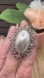 Oval Vintage Style Faux Pearl Rhinestone Silver Tone Stretchy Ring