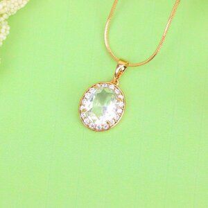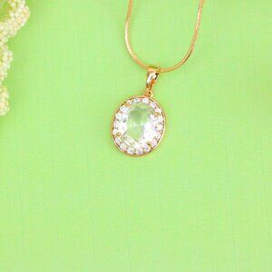 "Oval White Pendant with Crystal Halo in Elegant Rose Gold Plating, XPPT1621