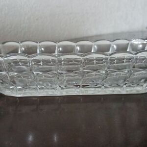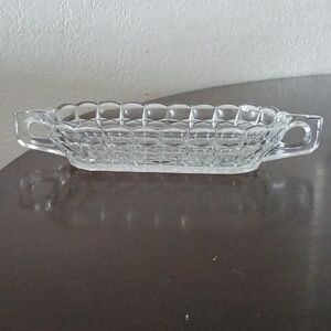 Oval glass dish with handle /jewelry dish /sauce dish or candy dish. good condition.