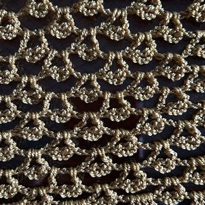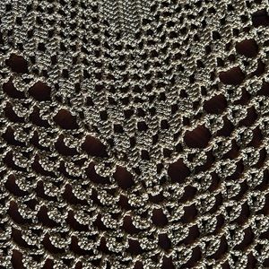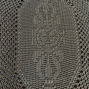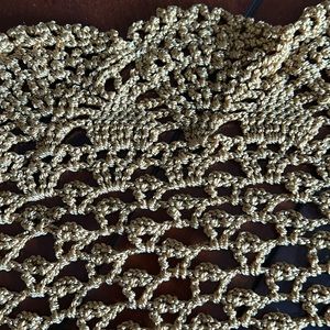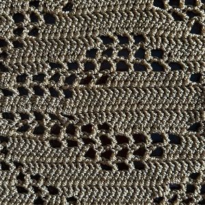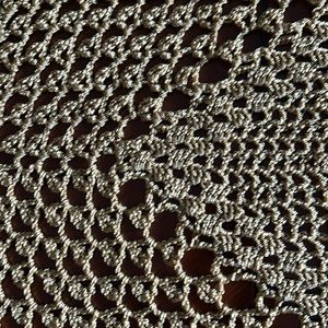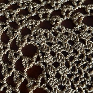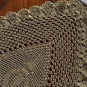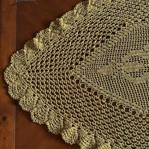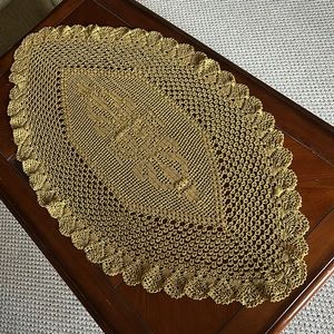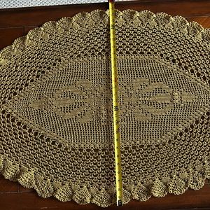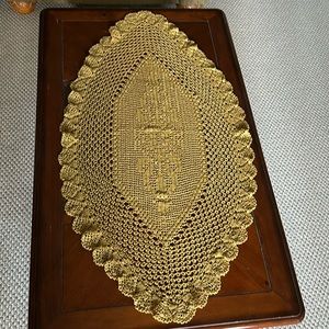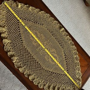 Oval table runner. Beautiful crocheted, gold tone. Perfect color for Christmas. Excellent condition.