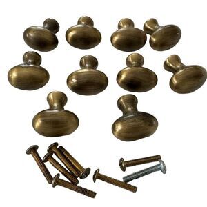 Oval Brass Metal Drawer Pulls Cabinet Knobs Handles Heavy Set of 10 1.25" Wide