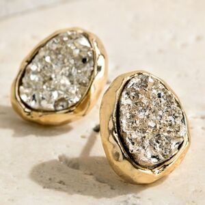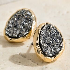 These are just beautiful, dainty and eye catching oval drusy post earrings in hematite and rose gold. They are Nickle and lead compliant. The approx length is .50" and width .25"