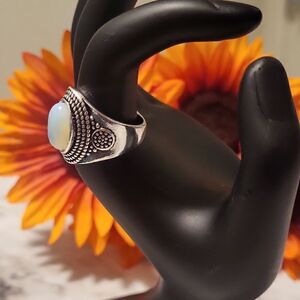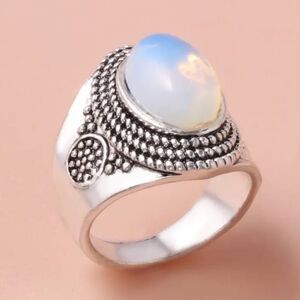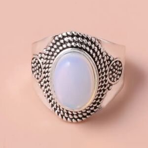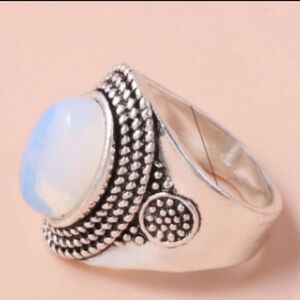 Oval Embellishment Silvery Moonstone Simulate Ring