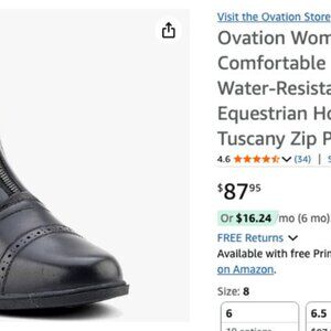 Ovation water resistant leather horse riding boots, size 8. Worn for a short period of time only. Price new with tax over $90. Asking $35.