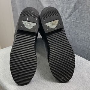 boots are in pretty good condition with small signs of use. black shoe lace on left boot may need adjustment/replacing. no holes rips or tears. review all pics.