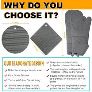FIRST-CLASS QUALITY - Our oven mitts kit is made of high-quality food-grade silicone material, BPA-free, with excellent flexibility, stability and elasticity, no yellowing, and not easy to deform, high tear resistance, high insulation, wear resistance, high and low temperature resistance, flame retardant type, anti-aging, environmentally-friendly, can resist up to 500°F