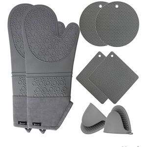 Oven Mitts and Hot Pads Set 8 Piece Gray