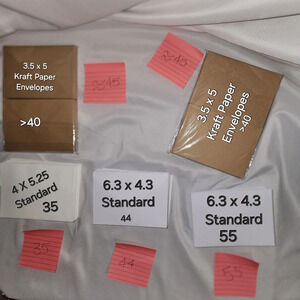 This is an assortment of envelopes, some standard material and some are Kraft paper. These are from Thank You cards I've used reselling (but I don't use the envelopes.)