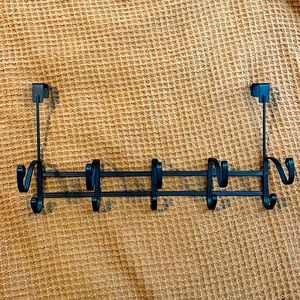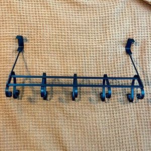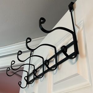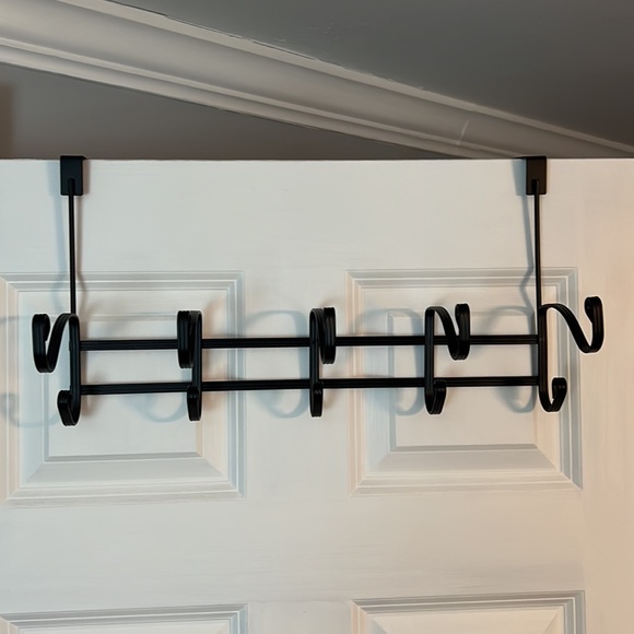 New condition. Black rack. Hangs over doors. Hang coats, bags, hats, scarves, toes, and more! Organize and hang your wardrobe for the week. Create more hanging space!