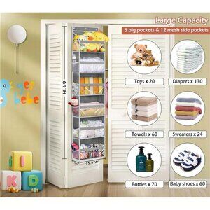 Over Door Organizer 6 Large 12 Side Pocket Hanging Storage Baby Closet Pantry