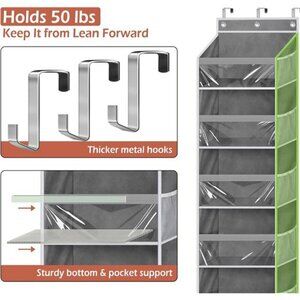 🧿【Holds up to 50 lbs】 Heavy Duty Fabric and thicker metal hooks, it's sturdy enough to completely fill up, 3 metal hooks fit for door or closet as thick as 1.37"-1.65"; also the clear windows make the behind the door storage organizer easy to see which items are where;