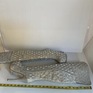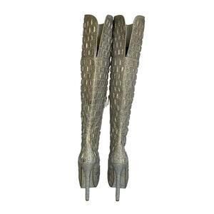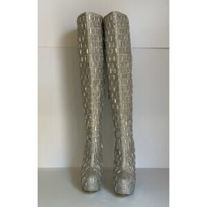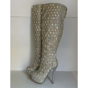 Women’s Silver Rhinestone Over Knee High Heel Boots Shiekh Size 9 Glam Party Platform Stiletto