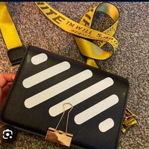 This shoulder bag is crafted from 100% leather with a two-tone finish and features a leather top handle and woven bookish logo shoulder strap. The metal clasp mimics a binder clip and the straps are completed with matching hardware. Made in Italy