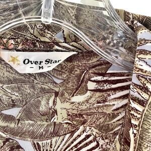 Over Star Vintage Palm Leaves Tropical Print Long Sleeve Pineapple Shirt Size M