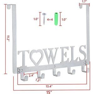 🧿TOWEL DOOR HANGER MATERIAL: Over the door towel hooks made of high quality high manganese steel, With Silver Grey sand blasting, feel smooth, carving carefully, durable, waterproof and rustproof.