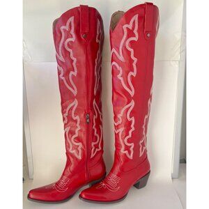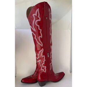 Over The Knee Western Boots Women Chunky Heel Cowgirl Boots Size 10
