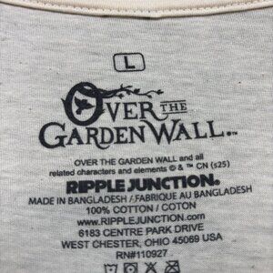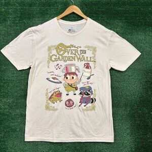 Over the Garden Wall beige T-Shirt Size Large measures 23” pit to pit and 29” long. Features unique character design with natural wear and minor markings. Perfect for fans of the animated series or collectors of nostalgic cartoon apparel