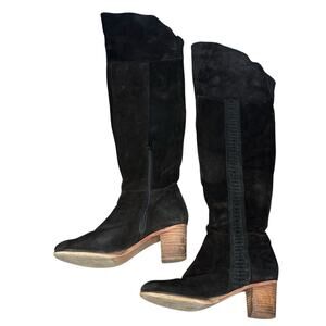 Over the Knee Boots Suede Leather Block Heel Black Size 8M Matisse Muse
