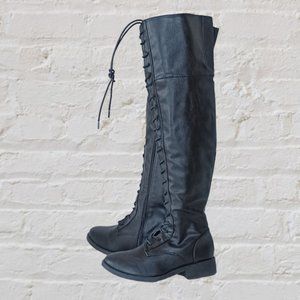 Over the Knee Lace-up Black Riding Boots, NEW size 6.5