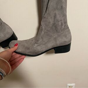 Over the Knee Suede Block Heel Boots in Gray- Size 9