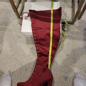 Super cute over the knee, wide calf, tie up boots. Never worn. Don't miss out!! Check measurements in photos. Wide width
