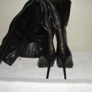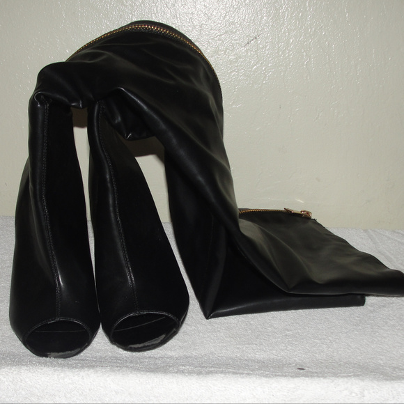 These are the hottest boots EVEROver the knee featuring open toe, gold rear zipper for a easy on/off, heel approx 4 1/2. Shaft height including heel 28, and opening circumference 18.