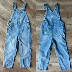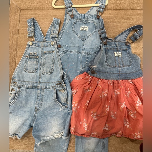 2 5T Oshkosh overalls, one long, one jumper dress