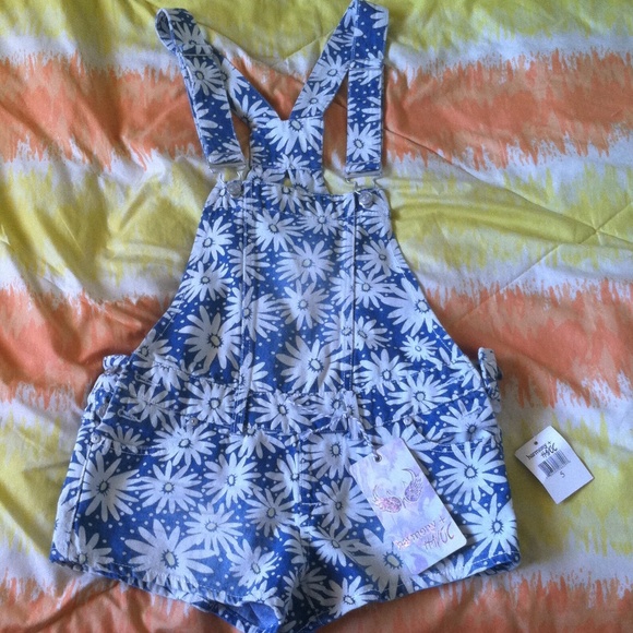 Daisy flower overall shorts. They still have the tag. There are buttons on the sides to make easier to put on.