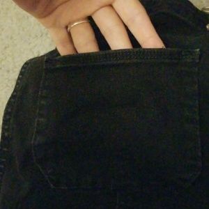 Black hollister overall shorts. The shorts are midi length. Front and back short pockets plus front overall pocket. Very comfortable, only worn once
